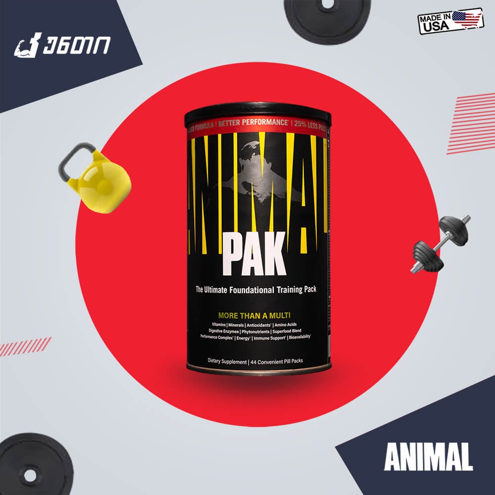 Animal Pak- ის საშუალებით თქვენ მიიღებთ ყველაფერს, რაც გჭირდებათ. და უფრო მეტსაც. პროდუქტი გვთავაზობს 60–ზე მეტ საკვანძო ინგრედიენტს. თითოეულ პაკეტში გაერთიანებულია 11 ტაბლეტი, რომლებიც ჩვენს ორგანიზმს აწვდიან სპეციალურად შემუშავებულ მიკრონუტრიენტებს: ვიტამინებს, მინერალებს, ამინომჟავებსა და მცენარეულ ექსტრაქტებს. ამგვარად დანამატი გვაძლევს საშუალებას ინტენსიური ვარჯიშის, არასრულფასოვანი კვებისა და დიეტის დროს მივიღოთ ყველა ის საჭირო ნივთიერება, რომელიც ჩვენს სხეულს ესაჭიროება გამართული ფუნქციონირებისათვის.